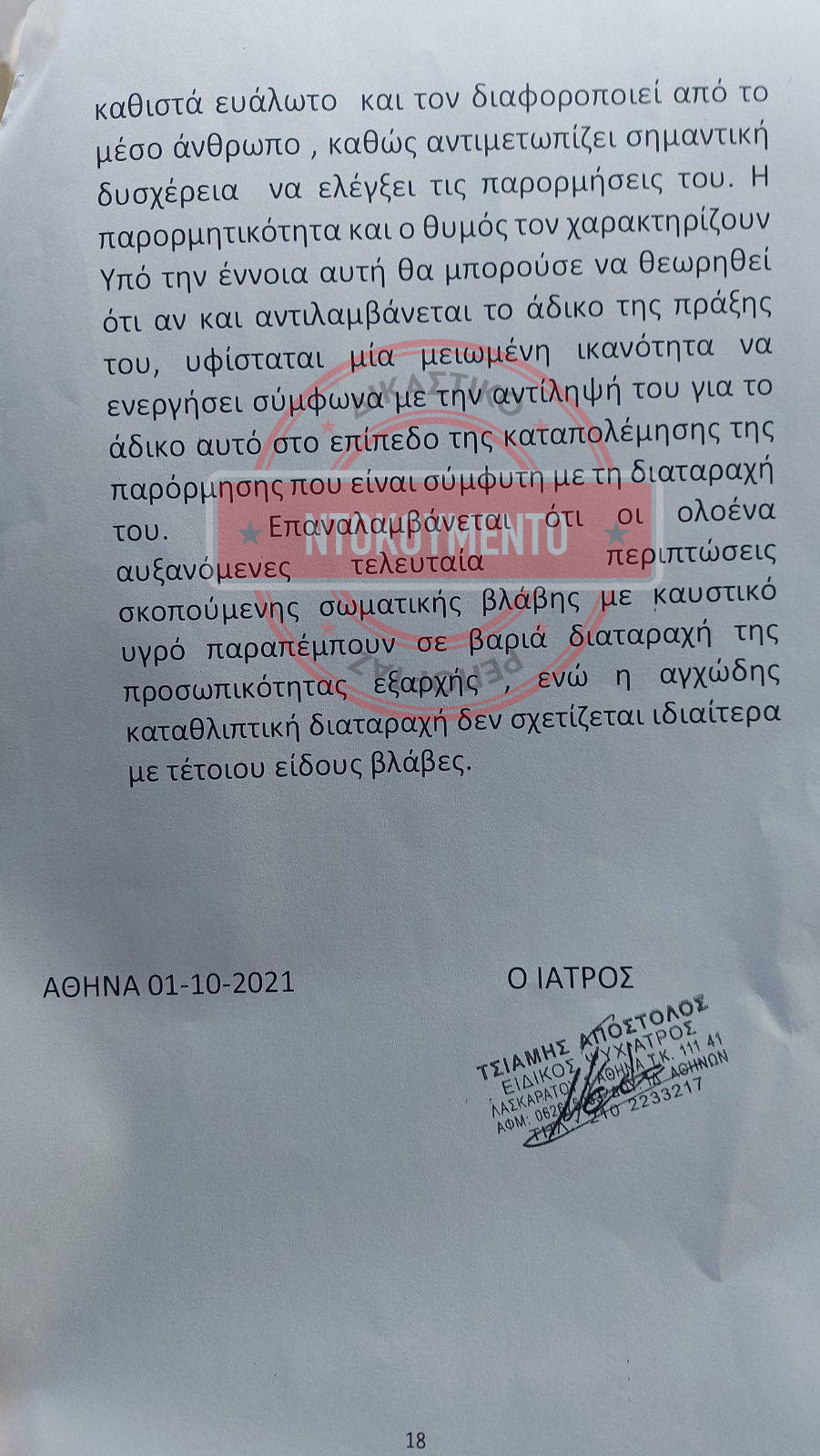 Τα αποτελέσματα της ψυχιατρικής πραγματογνωμοσύνης του ιερέα, ο οποίος επιτέθηκε με βιτριόλι μέσα στην Ιερά Σύνοδο με αποτέλεσμα να τραυματίσει Μητροπολίτες και όχι μόνο αποκαλύπτει το dikastikoreportaz.gr.