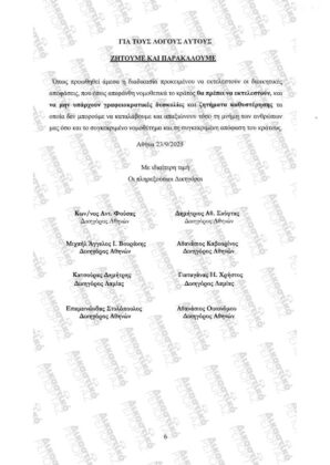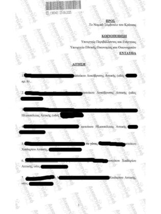 Οι 23 πληγέντες απέστειλαν την επιστολή στο ΝΣΚ στις 23 Σεπτεμβρίου. Παράλληλα την κοινοποίησαν στα υπουργεία Περιβάλλοντος και Ενέργειας και Οικονομικών.