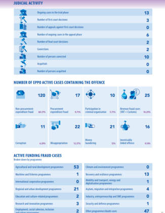 Στη δημοσιότητα έδωσε η Ευρωπαϊκή Εισαγγελία την ετήσια έκθεση της για το 2025 στην οποία περιγράφονται αναλυτικά οι δράσεις της ανά χώρα και η εκτιμώμενη ζημία στον κοινοτικό προϋπολογισμό.