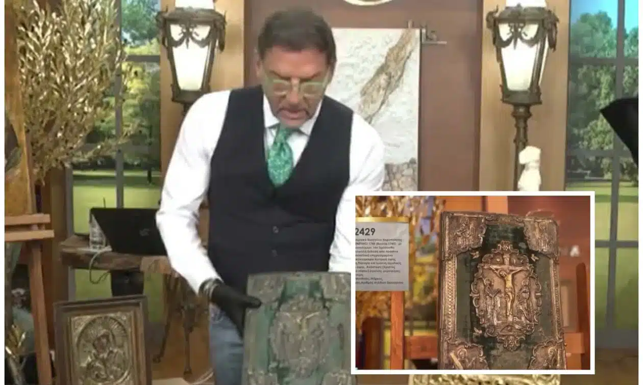 Σύμφωνα με ρεπορτάζ της Ελένης Καρανικόλα – Κοντορούση οι αστυνομικοί εντόπισαν πάνω από 300 έργα τέχνης, θρησκευτικές εικόνες και αντικείμενα που παραπέμπουν σε αρχαιότητες, ενώ ξεχωρίζει το παλαιό Ευαγγέλιο που φέρεται να είναι αυθεντικό.