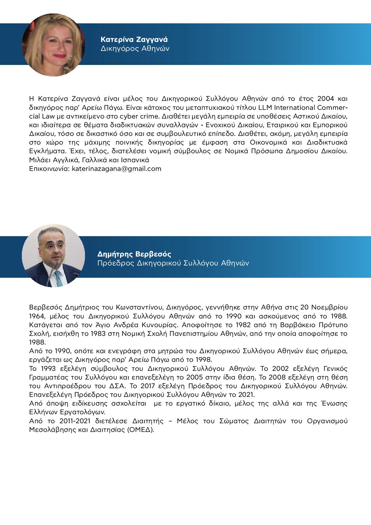 - Δημήτρης Αναστασόπουλος, Δικηγόρος, Μέλος ΔΣ Δικηγορικού Συλλόγου Αθηνών, Ιδρυτής & Διευθύνων Εταίρος της Δικηγορικής Εταιρείας «ΑΑ Lawyers»